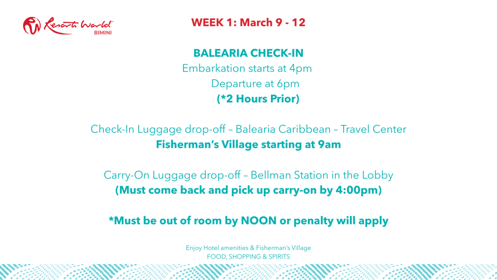IMPORTANT INFORMATION: As your stay with us comes to an end, please be reminded of the following departure times based on your scheduled ship sailing time.